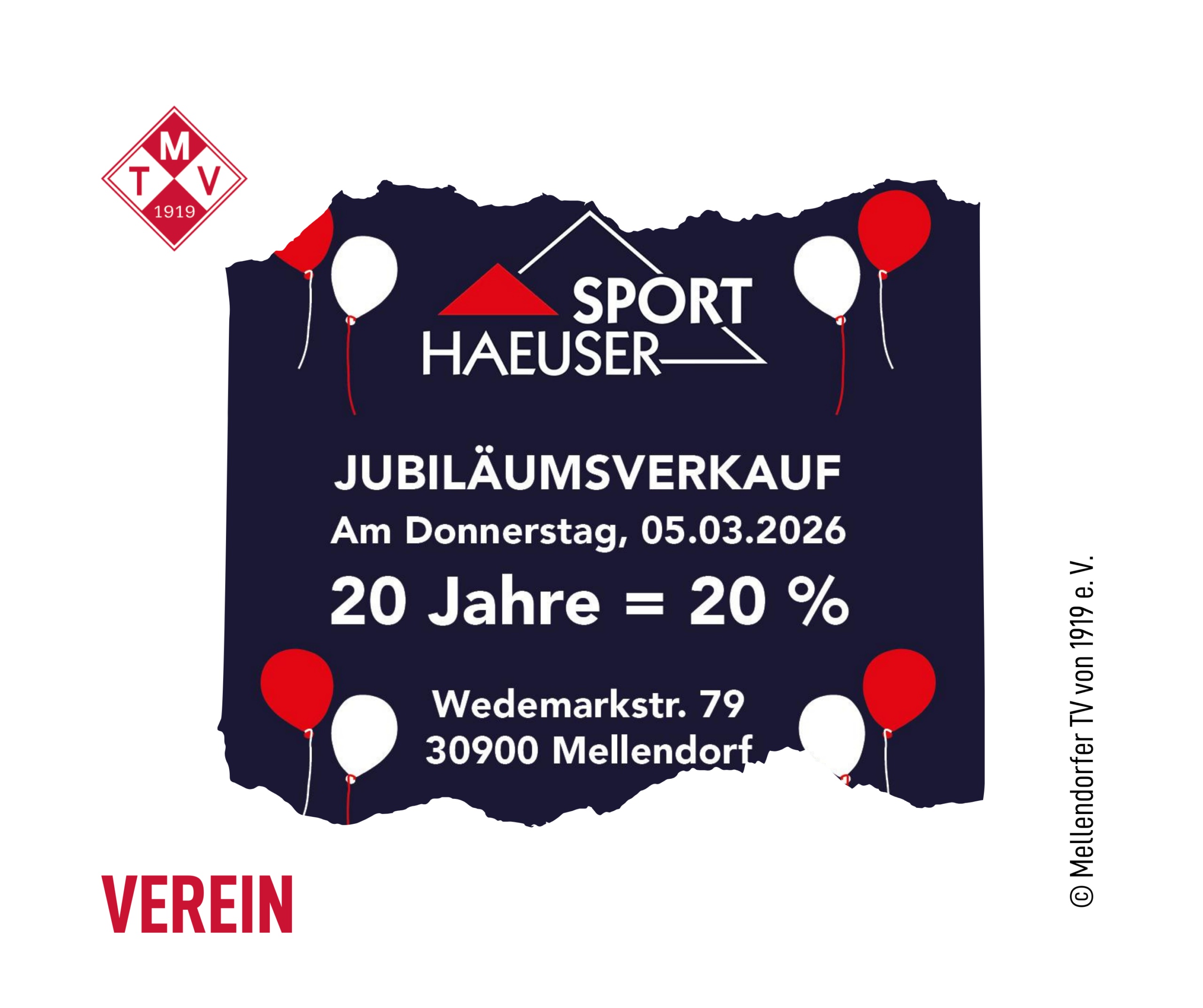 Am 05.03.2026 ist es soweit: Das SportfachgeschĂ€ft Sport Haeuser in Mellendorf blickt auf 20 erfolgreiche Jahre voller Bewegung, Leidenschaft und persönlicher Beratung zurĂŒck. Dieses besondere JubilĂ€um möchte unsere geschĂ€tzte Kooperationspartnerin Hilke Haeuser gebĂŒhrend feiern â und lĂ€dt herzlich zum JubilĂ€umskauf am Donnerstag, den 05.03.2026, ein.